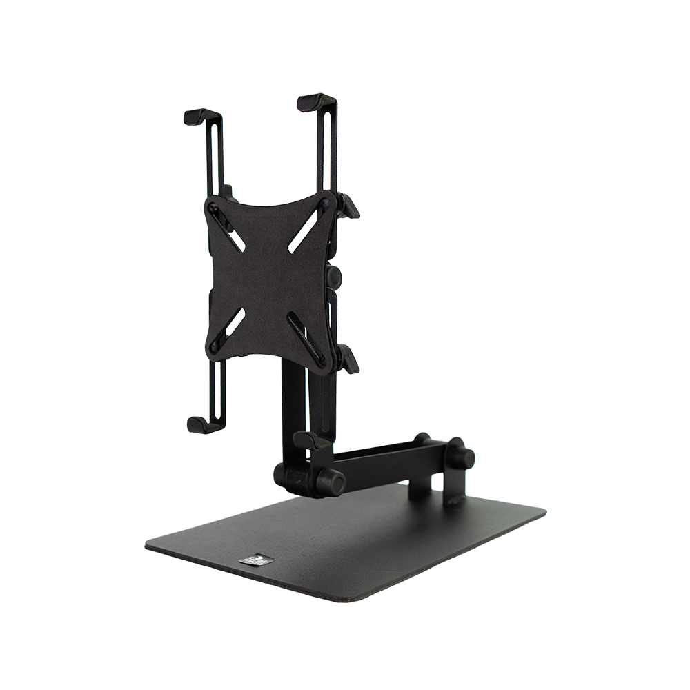 O suporte Portablet é fabricado com chapa de aço, submetido a tratamento de fosfatização e pintura epóxi, garantindo durabilidade e resistência. O design foi desenvolvido para proporcionar uma regulagem de altura precisa, permitindo o ajuste milimétrico de 8 a 36 cm (mínimo e máximo) por meio de um sistema de braços articulados, dando a possibilidade de ser utilizado de qualquer lado, na altura que desejar